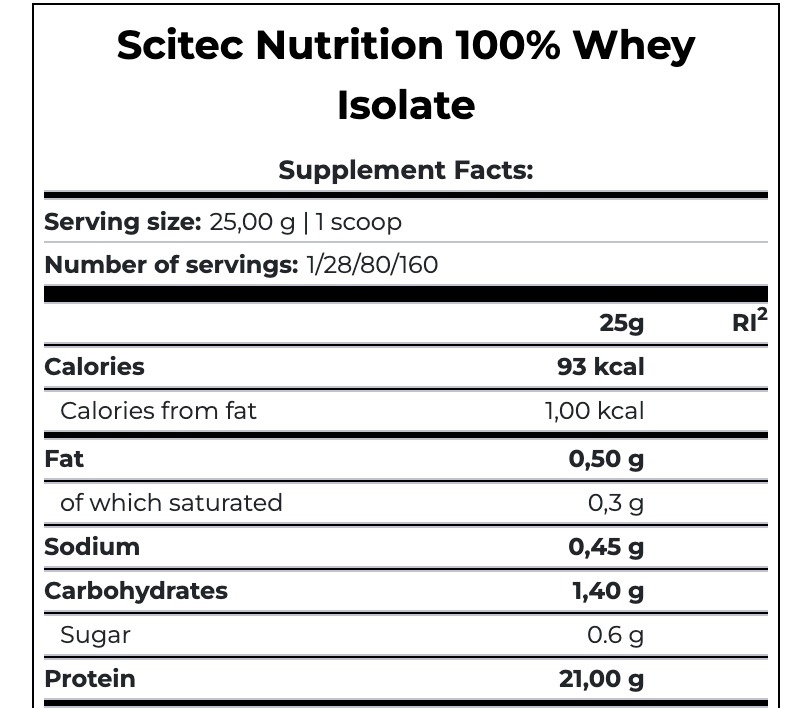 100% Whey Isolate je srvátkový proteínový prášok a je to proteín vynikajúcej kvality zo srvátkového izolátu a obohatený ešte rýchlejšie sa vstrebávajúcim srvátkovým hydrolyzátom. Je to perfektný proteínový prášok na budovanie svalov. Táto receptúra obsahuje menej sacharidov ako kedykoľvek predtým! Vo všeobecnosti sa srvátkové „izoláty“ vyrábajú tak, aby mali vyššie percento bielkovín ako srvátkové „koncentráty“, čo tiež znamená, že „izoláty“ majú nižší obsah cukru (vrátane laktózy) a tuku!