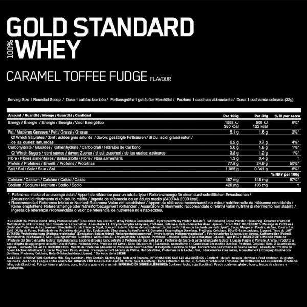 100% WHEY™ od Optimum Nutrition GOLD STANDARD je celosvetovo najpredávanejší srvátkový proteín. Dodáva 24 g srvátkového proteínu na podporu rastu svalov. Po tréningu vaše telo využíva bielkoviny na opravu a obnovu svalových vlákien. Každá porcia skvelej chuti obsahuje 24 g prémiového srvátkového proteínu na podporu rastu svalov a 5,5 g prirodzene sa vyskytujúcich BCAA. Všetko len s 1 g tuku, 1,2 g cukrov a 1,6 g sacharidov (príchuť vanilková zmrzlina). Nielen to, ale svetová jednička je ešte lepšia s novým a vylepšeným chuťovým profilom našich 5 najlepších príchutí: