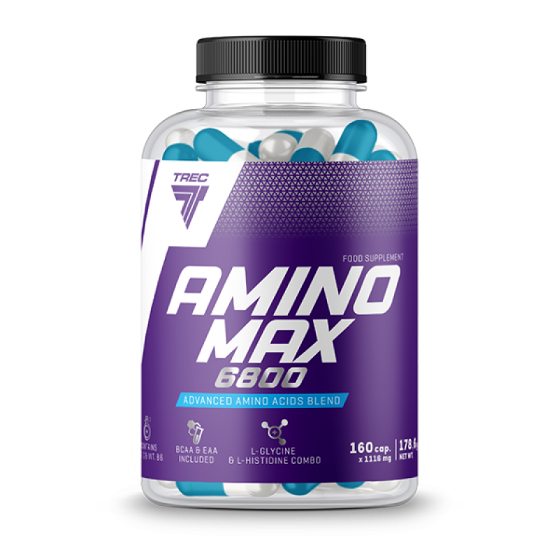 AMINOMAX 6800 je určený na rýchle doplnenie nedostatku aminokyselín, stavu, ktorý sa vyskytuje po intenzívnom tréningu alebo v dôsledku nedostatočného príjmu bielkovín. AMINOMAX 6800 obsahuje zloženie aminokyselín a mikropeptidov odvodených z hydrolyzátu srvátkového proteínového koncentrátu s výrazným prídavkom čistého L-glutamínu a taurínu, ktoré všetky prispievajú k jeho ideálnemu aminogramu. AMINOMAX 6800 je tiež obohatený o vitamín C a vitamín B6, vďaka ktorým sa aminokyseliny v organizme efektívnejšie využívajú.